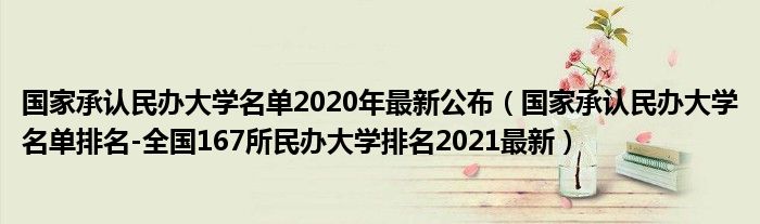 大家好,綜合小編來為大家解答以上問題。國家承認民辦大學名單2020年最新公布,國家承認民辦大學名單排名-全國167所民辦大學排名2021最新很多人還不知道,現在讓我們一起來看看吧!