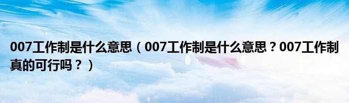 大家好,綜合小編來為大家解答以上問題。007工作制是什么意思,007工作制是什么意思?007工作制真的可行嗎?很多人還不知道,現在讓我們一起來看看吧!