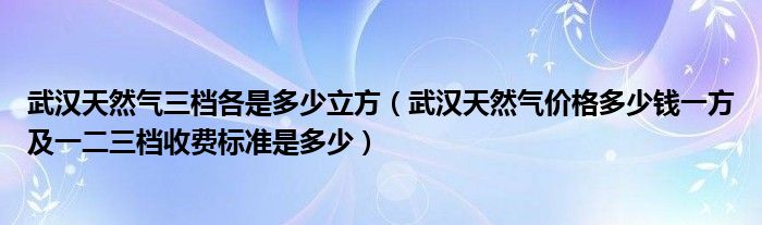 大家好,綜合小編來為大家解答以上問題。武漢天然氣三檔各是多少立方,武漢天然氣價格多少錢一方及一二三檔收費(fèi)標(biāo)準(zhǔn)是多少很多人還不知道,現(xiàn)在讓我們一起來看看吧!
