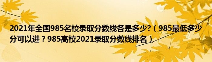 大家好,綜合小編來為大家解答以上問題。2021年全國985名校錄取分數(shù)線各是多少?,985最低多少分可以進?985高校2021錄取分數(shù)線排名很多人還不知道,現(xiàn)在讓我們一起來看看吧!