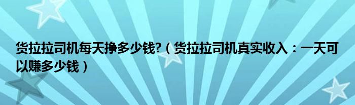 大家好,綜合小編來為大家解答以上問題。貨拉拉司機每天掙多少錢?,貨拉拉司機真實收入:一天可以賺多少錢很多人還不知道,現在讓我們一起來看看吧!