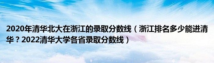 大家好,綜合小編來為大家解答以上問題。2020年清華北大在浙江的錄取分數線,浙江排名多少能進清華?2022清華大學各省錄取分數線很多人還不知道,現在讓我們一起來看看吧!