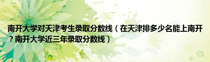 大家好,綜合小編來為大家解答以上問題。南開大學對天津考生錄取分數線,在天津排多少名能上南開?南開大學近三年錄取分數線很多人還不知道,現在讓我們一起來看看吧!