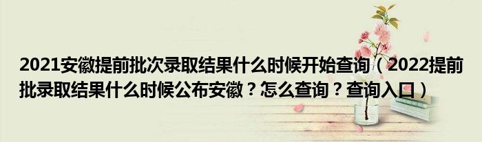 大家好,綜合小編來為大家解答以上問題。2021安徽提前批次錄取結果什么時候開始查詢,2022提前批錄取結果什么時候公布安徽?怎么查詢?查詢入口很多人還不知道,現在讓我們一起來看看吧!