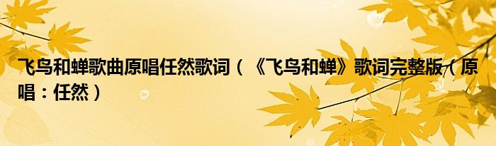 大家好,綜合小編來為大家解答以上問題。飛鳥和蟬歌曲原唱任然歌詞,《飛鳥和蟬》歌詞完整版,原唱:任然很多人還不知道,現在讓我們一起來看看吧!