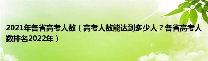 大家好,綜合小編來為大家解答以上問題。2021年各省高考人數,高考人數能達到多少人?各省高考人數排名2022年很多人還不知道,現在讓我們一起來看看吧!