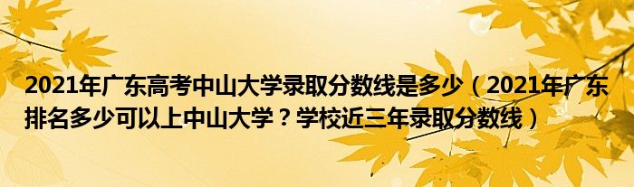 大家好,綜合小編來為大家解答以上問題。2021年廣東高考中山大學錄取分數線是多少,2021年廣東排名多少可以上中山大學?學校近三年錄取分數線很多人還不知道,現在讓我們一起來看看吧!