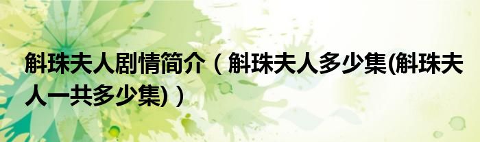 大家好,綜合小編來為大家解答以上問題。斛珠夫人劇情簡介,斛珠夫人多少集(斛珠夫人一共多少集)很多人還不知道,現(xiàn)在讓我們一起來看看吧!