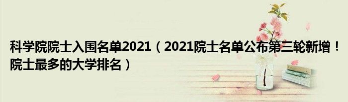 大家好,綜合小編來為大家解答以上問題。科學院院士入圍名單2021,2021院士名單公布第三輪新增!院士最多的大學排名很多人還不知道,現(xiàn)在讓我們一起來看看吧!