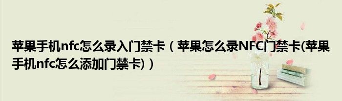 大家好,綜合小編來(lái)為大家解答以上問(wèn)題。蘋(píng)果手機(jī)nfc怎么錄入門(mén)禁卡,蘋(píng)果怎么錄NFC門(mén)禁卡(蘋(píng)果手機(jī)nfc怎么添加門(mén)禁卡)很多人還不知道,現(xiàn)在讓我們一起來(lái)看看吧!