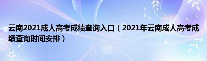 大家好,綜合小編來為大家解答以上問題。云南2021成人高考成績查詢入口,2021年云南成人高考成績查詢時間安排很多人還不知道,現在讓我們一起來看看吧!