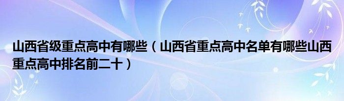 大家好,綜合小編來為大家解答以上問題。山西省級重點高中有哪些,山西省重點高中名單有哪些山西重點高中排名前二十很多人還不知道,現在讓我們一起來看看吧!