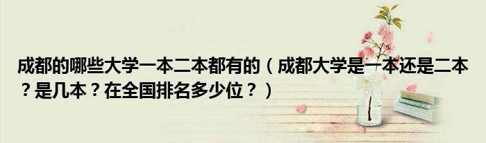 大家好,綜合小編來為大家解答以上問題。成都的哪些大學(xué)一本二本都有的,成都大學(xué)是一本還是二本?是幾本?在全國排名多少位?很多人還不知道,現(xiàn)在讓我們一起來看看吧!