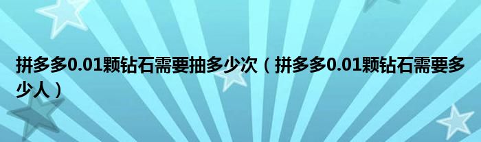 大家好,綜合小編來為大家解答以上問題。拼多多0.01顆鉆石需要抽多少次,拼多多0.01顆鉆石需要多少人很多人還不知道,現在讓我們一起來看看吧!