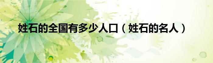 大家好,小博來為大家解答以上問題。姓石的全國有多少人口,姓石的名人很多人還不知道,現在讓我們一起來看看吧!