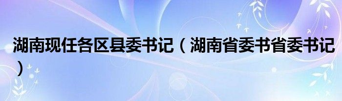 大家好,小博來為大家解答以上問題。湖南現(xiàn)任各區(qū)縣委書記,湖南省委書省委書記很多人還不知道,現(xiàn)在讓我們一起來看看吧!