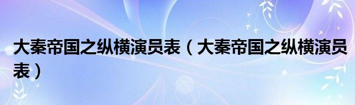 大家好,小博來為大家解答以上問題。大秦帝國之縱橫演員表,大秦帝國之縱橫演員表很多人還不知道,現在讓我們一起來看看吧!