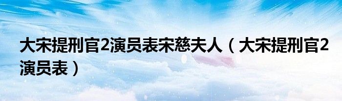 大家好,小博來為大家解答以上問題。大宋提刑官2演員表宋慈夫人,大宋提刑官2演員表很多人還不知道,現(xiàn)在讓我們一起來看看吧!