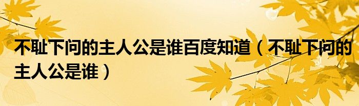 大家好,小博來為大家解答以上問題。不恥下問的主人公是誰百度知道,不恥下問的主人公是誰很多人還不知道,現在讓我們一起來看看吧!