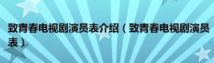 大家好,小博來為大家解答以上問題。致青春電視劇演員表介紹,致青春電視劇演員表很多人還不知道,現在讓我們一起來看看吧!