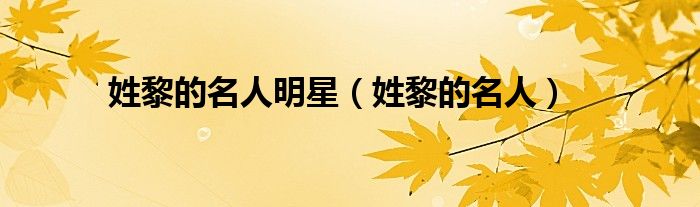 大家好,小博來為大家解答以上問題。姓黎的名人明星,姓黎的名人很多人還不知道,現在讓我們一起來看看吧!