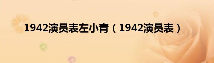 大家好,小博來為大家解答以上問題。1942演員表左小青,1942演員表很多人還不知道,現在讓我們一起來看看吧!