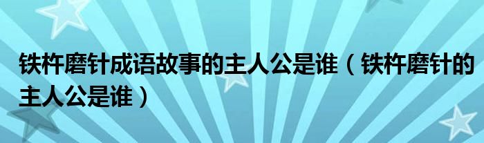 大家好,小博來為大家解答以上問題。鐵杵磨針成語故事的主人公是誰,鐵杵磨針的主人公是誰很多人還不知道,現在讓我們一起來看看吧!