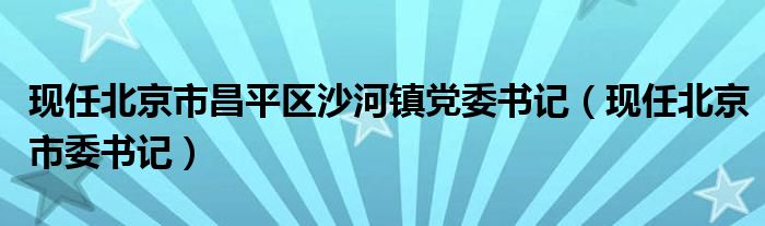 大家好,小博來為大家解答以上問題。現(xiàn)任北京市昌平區(qū)沙河鎮(zhèn)黨委書記,現(xiàn)任北京市委書記很多人還不知道,現(xiàn)在讓我們一起來看看吧!