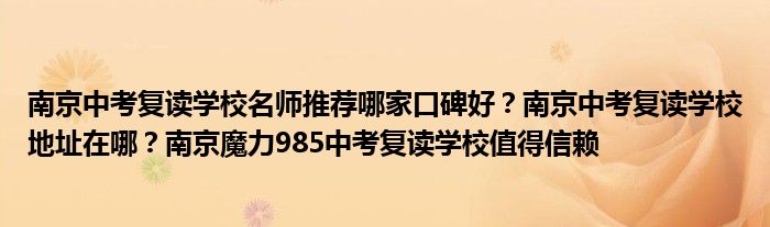 南京中考復(fù)讀學(xué)校名師推薦哪家口碑好?南京中考復(fù)讀學(xué)校地址在哪?南京魔力985中考復(fù)讀學(xué)校值得信賴嗎?