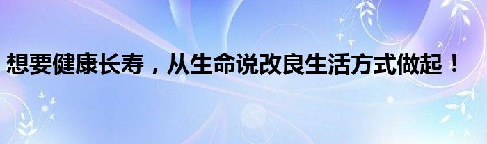 生命說告訴你 什么才是健康的生活方式