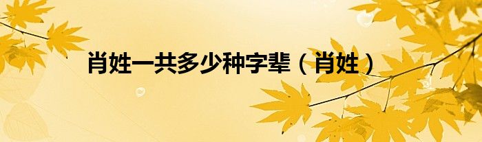 大家好,小博來為大家解答以上問題。肖姓一共多少種字輩,肖姓很多人還不知道,現(xiàn)在讓我們一起來看看吧!