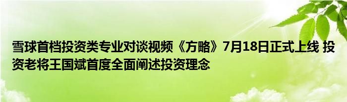 7月18日晚8點,雪球出品的首檔投資類專業對談視頻《方略》在全網正式登陸。首期視頻中,雪球創始人方三文深度對談泉果基金創始人王國斌。作為中國資本市場最早一批入行的老將,泉果基金的創立是王國斌再啟征程的關鍵一步。此次對談也是王國斌近年來首次公開露面系統闡述自己的投資理念。
