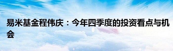 2022年以來,各大板塊表現各異,市場中蘊藏著豐富的投資機會,但尋到“寶藏”更需一雙慧眼。易米基金副總經理程偉慶先生擁有23年賣方研究和買方投資經驗,以其長期耕耘投資領域的視角,對今年四季度的投資看點與機會進行了分享。