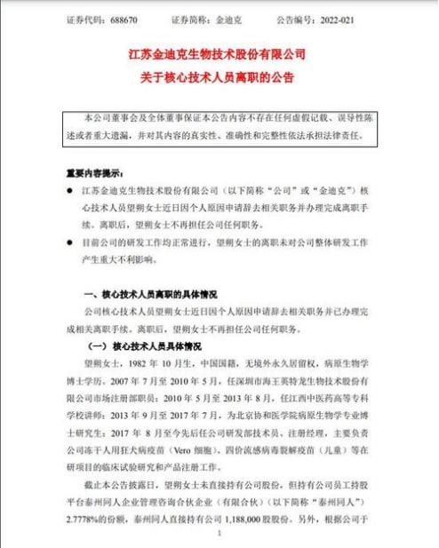 根據9月30號所獲得的消息,在金迪克公司所發布的公告中可以知道,作為核心技術人員的楊峻宇離職,公告所表明的是因為個人原因。在金迪克這家公司,主要是董事長還有三名核心的技術人員,而三名技術人員中目前已有兩位都辭職了。