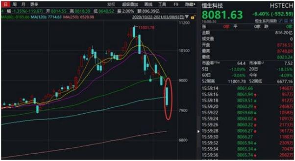目前盤面上只剩余地產,餐飲,旅游等板塊現下滑趨勢較小之外,目前保險以及電信等少數股份目前已經出現上漲趨勢,在科技版塊方面騰訊,嗶哩嗶哩在收盤之前已經創下歷史最低其中分別下降2%和6%同比發行價已經下跌將近9%。