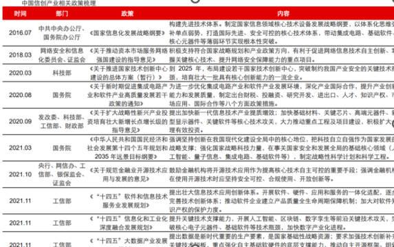在外部大環(huán)境日益不穩(wěn)定的情況下,越來越凸顯信創(chuàng)的重要性,國產(chǎn)可以自己進行研發(fā),可替代的產(chǎn)品并且進入自主可控階段的緊要性是十分迫切的,在這個大背景下是有希望全面進入新創(chuàng)的加速時代,為了支持信創(chuàng)產(chǎn)業(yè)的發(fā)展,出臺了大量的政策。