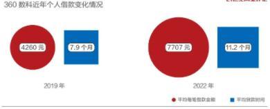 在同一時期,在360數科平臺上獲得信貸額度批準的用戶已經高達4130萬名,到6月30日的時候,正在辦理的貸款余額為1505億元,雖然360集團這幾年的市價在不斷的下跌,但是360數科的營業收入卻在不斷的攀升,記者經過調查發現,從2019年個人借款的平均每筆金額在4260元,漲到了現在的7707元,個人平均貸款的時間也從7個多月增加到了11個月余。
