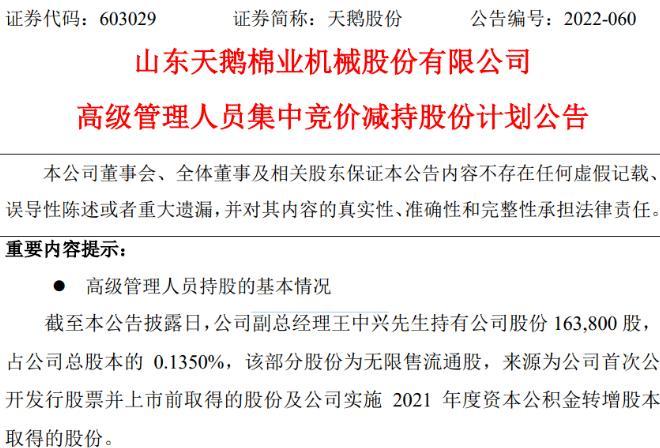 日前天鵝股份控股股東在公司副總對于天鵝股份進行減持后,天鵝股份在供銷社概念股的價值下連續出現了11天的連漲,可謂是2022年最牛氣的股票,最近天鵝股份控股的大部分股東也發出通告,要對天鵝股份進行減持,投資者紛紛表示這是天鵝股份的股東,要進行套現的操作,12月8日晚上天鵝股份對外發布的公告稱控股股東山東供銷社公司在對天鵝股份計劃減持不超過240萬股的天鵝股份,這一減持計劃將在6個月內完成。
