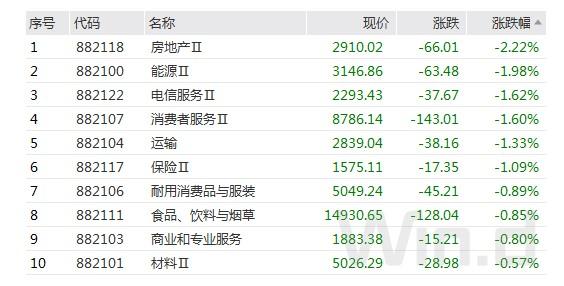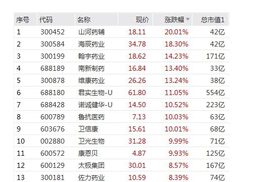 特別是一些制藥企業的股票都出現了10%左右的漲幅太極集團佐力藥業和斯泰利等制藥企業,漲幅還都是比較巨大的其中山河藥輔的漲幅接近20%,房地產能源和電信服務以及運輸保險方面都出現了比較大的跌幅,房地產已下跌2.3%位居榜首,西安飲食,人人樂,全聚德黑芝麻的股價也都出現了大幅度的下跌,西安影視的跌幅已經超過了10%。