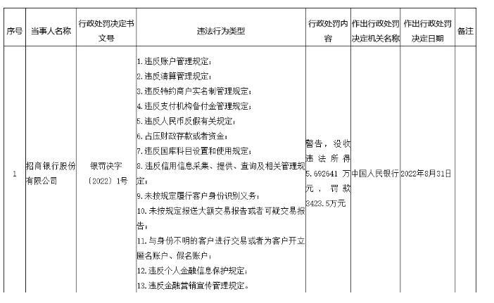 央行再度重拳出擊!招商銀行、廣發(fā)銀行、銀聯(lián)商務(wù)合計(jì)被罰超1.34億