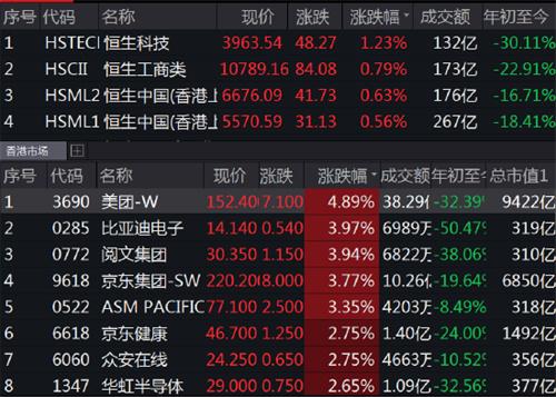 從科技股方面來看,現(xiàn)在小鵬汽車上漲將近6%,東方甄選、美團(tuán)、中芯國(guó)際上漲超2%,閱文集團(tuán)上漲超過4%,京東集團(tuán)、海爾智家、網(wǎng)易、快手、騰訊控股上漲超1%,小米集團(tuán)一度下跌超過3%。