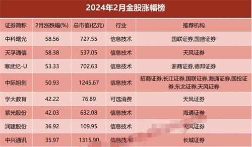 3.2月最牛金股標(biāo)的是中科曙光。當(dāng)月國(guó)盛證券和國(guó)聯(lián)證券兩家券商同時(shí)將中科曙光列入金股名單。上漲幅度排名第二的是天孚通信,上漲幅度達(dá)到58.38%,由天風(fēng)證券推薦。排名第三的是寒武紀(jì)-U,由德邦證券和浙商證券共同推薦,上漲幅度達(dá)到53.33%。排名第四的是中際旭創(chuàng),上漲幅度達(dá)到50.93%。中際旭創(chuàng)同時(shí)被國(guó)聯(lián)證券、長(zhǎng)江證券等7家券商共同推薦。