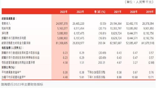 渤海銀行于3月28日發(fā)布了2023年度的報告,報告顯示2023年渤海銀行的營業(yè)收入達到人民幣249.97億,同比下降的幅度是5.55%,凈利潤值達到人民幣50.81億,同比下降的幅度是16.81%。渤海銀行的資產(chǎn)總額截止到2023年末,達到人民幣17,327.34億。