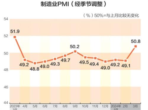 3月份全球制造業采購經理指數于4月6日公布,數據顯示全國制造業采購經理指數在3月份達到50.3%,重新回到了50%以上的擴張區間,全球經濟呈現出穩中上升的趨勢。