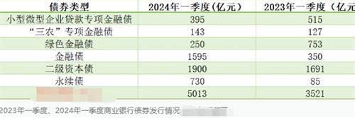 7.商業銀行2024年第一季度發行債券與上一年度同時期相比,出現了大幅度的增長。