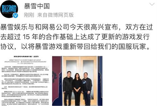 1.暴雪中國微博于4月10日發布公告表示,暴雪娛樂和網易公司宣布在過去超過15年合作基礎上針對更新的游戲開發達成了一致,國服玩家將會重新體驗暴雪游戲。