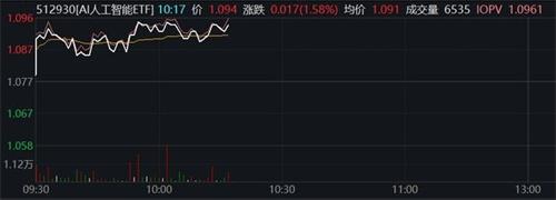 AI人工智能ETF截止到發稿時,上漲幅度超過了1.5%,成交金額超過人民幣2,000萬,換手率超過2%,盤中交易投資相當活躍。