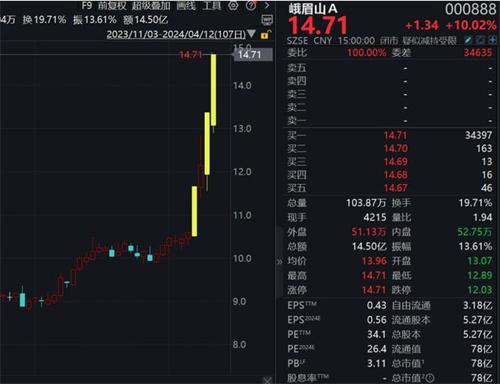 峨眉山A的股性自4月9日以來被激活,在最近的4個交易日當(dāng)中,有3次實現(xiàn)了漲停,其股票價格從每股10元左右上漲到了每股14元以上。面對峨眉山A如此突如其來的暴漲,市場上有傳言稱在峨眉山的主峰發(fā)現(xiàn)了一座金礦,對此峨眉山A及時進行了否認(rèn),并且表示峨眉山一直將每一位游客看作像黃金一樣珍貴。