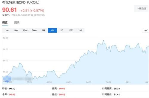 5.周一國際原油期貨基本上處于下跌的趨勢。日內(nèi)布倫特原油的價格下跌的幅度一度超過2%,跌破每桶88.8美元的價格。但是在以色列表示將會進行回擊的消息公布之后,油價開始止跌反彈,從此前的所有跌勢全部抹平。布倫特原油的價格目前是每桶90.61美元,上漲幅度達到0.57%。