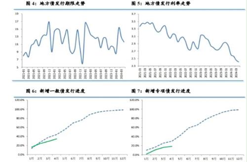 4.根據今年的預告顯示,2024年新增加的專項債券計劃發行規模大約是人民幣3.9萬億,去年相比增加的額度大約是人民幣1,000億。今年前4個月新增專項債券的發行數量,在全國計劃發行的規模中,所占的比例大約是19%,其進度比去年同一時期明顯慢了不少。